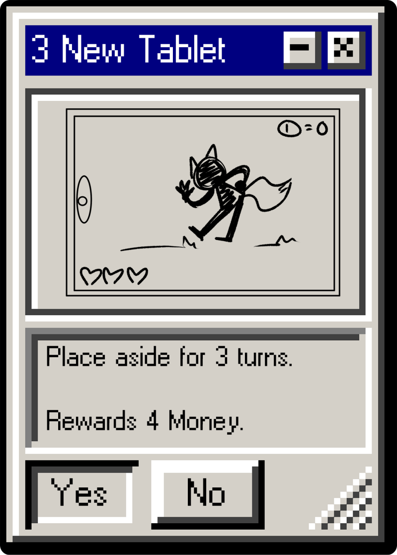 I also took onboard the idea to make the starter cards unique, so keeping with the windows theme, the starting hand, all worth zero money, are represented with a greyed out window, which is based on how windows would grey out if inactive, as seen in the pumpkin colour scheme above. A small and simple change that is still immediately identifyable.