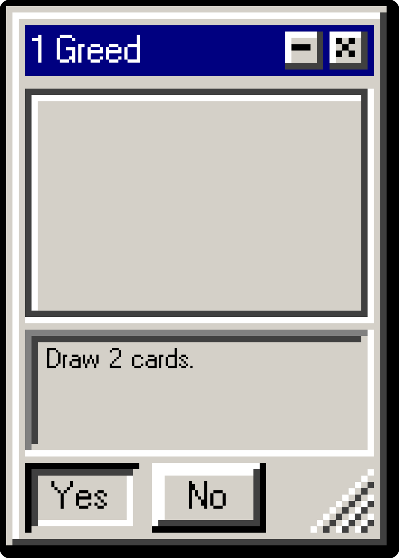 Once the gameplay was decided upon, the following concern was design. Early on I wanted the design to be very business-like, whether newspaper or computer themed, after some practice designs, I decided on using an older Windows 98 theme for the cards, the blue and grey was very corporate, while also giving a sense of disconnect from the real world.