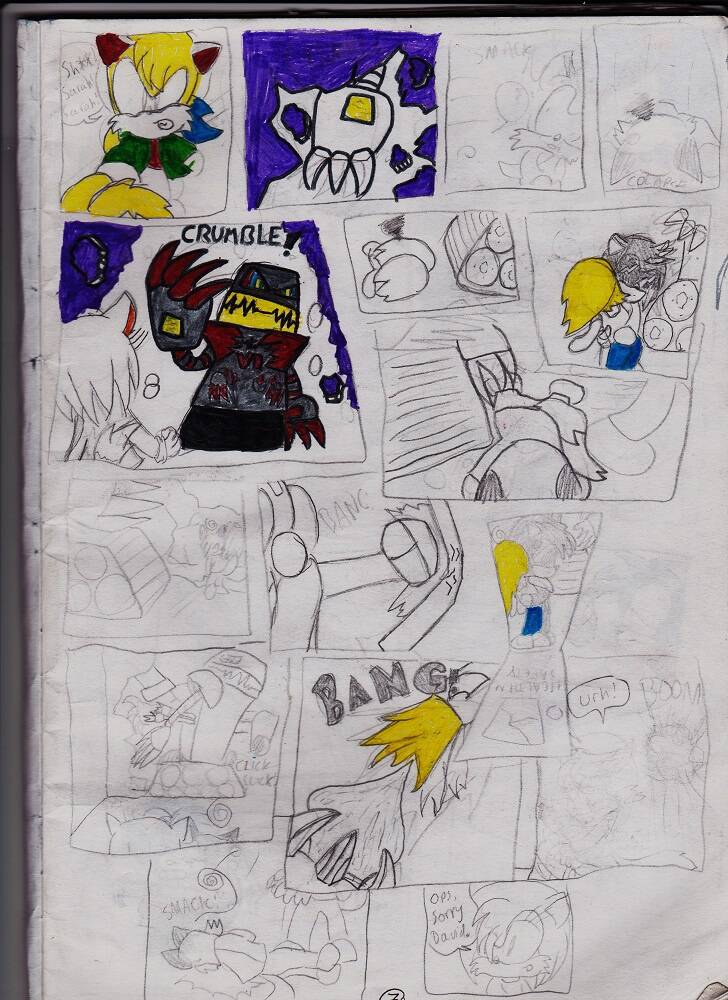 These scans were taken years ago and cannot be retaken, as such the resolution is low and the cropping is poor, but I like to keep them around to remind myself of my beginnings, of where I came from and where I want to go in life. This comic may be poorly made and in terrible condition, even unreadable in places, but it was my first and I still use the characters in this comic to this day in my other projects. You may even see them pop up around the site.
